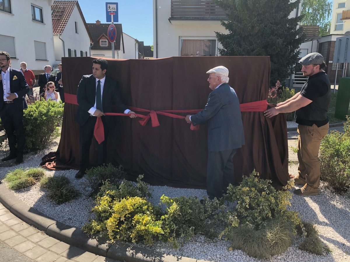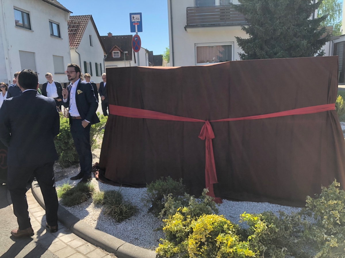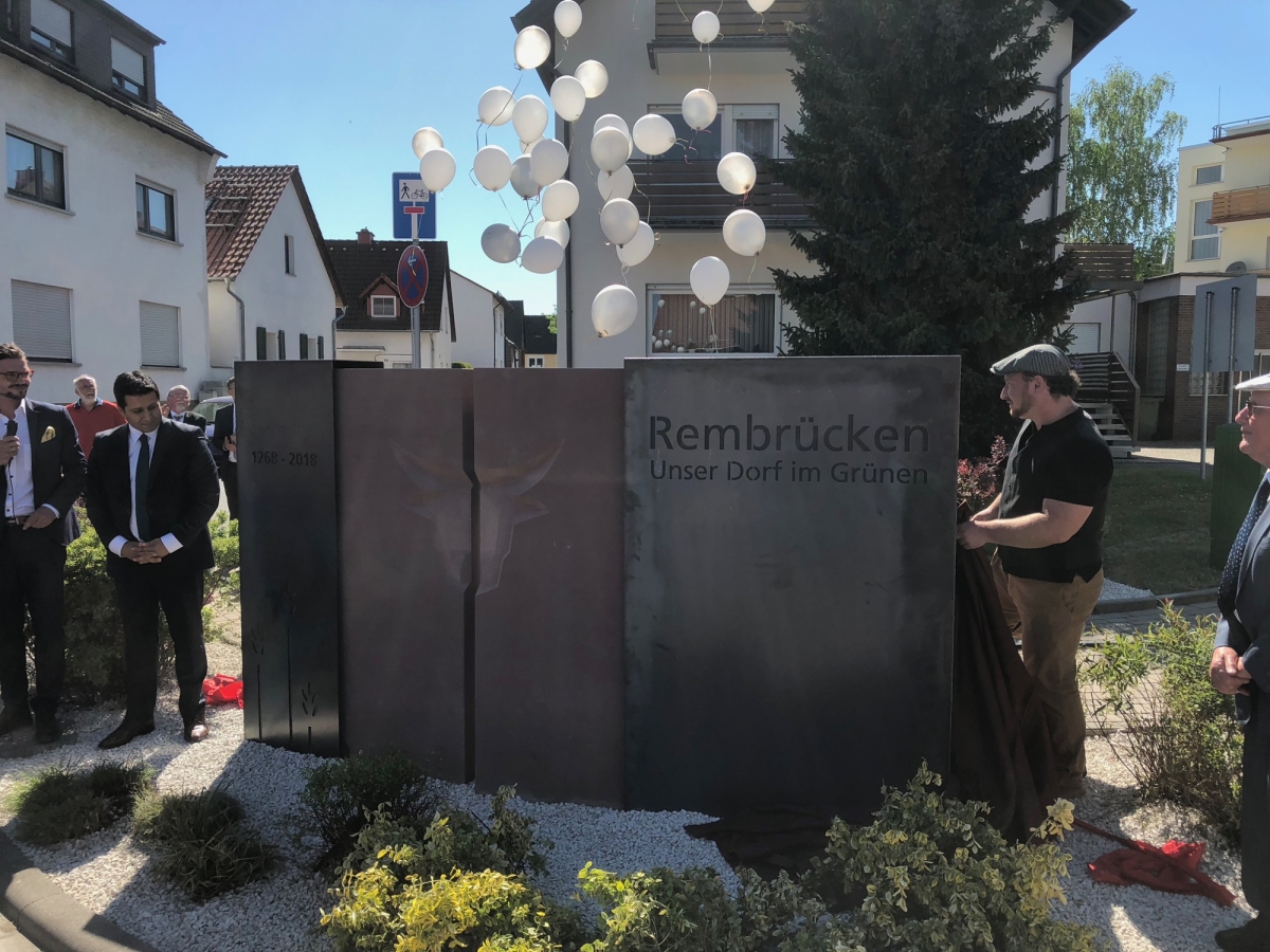 Den Abschluss der Veranstaltung bildete den Enthüllung einer eigens für das Jubiläum geschaffenen Skulptur an der Schnittstelle zwischen „Altem Ort“ und „neuer Bebauung“ an der Kreuzung Hauptstraße/Heusenstammer Straße.
