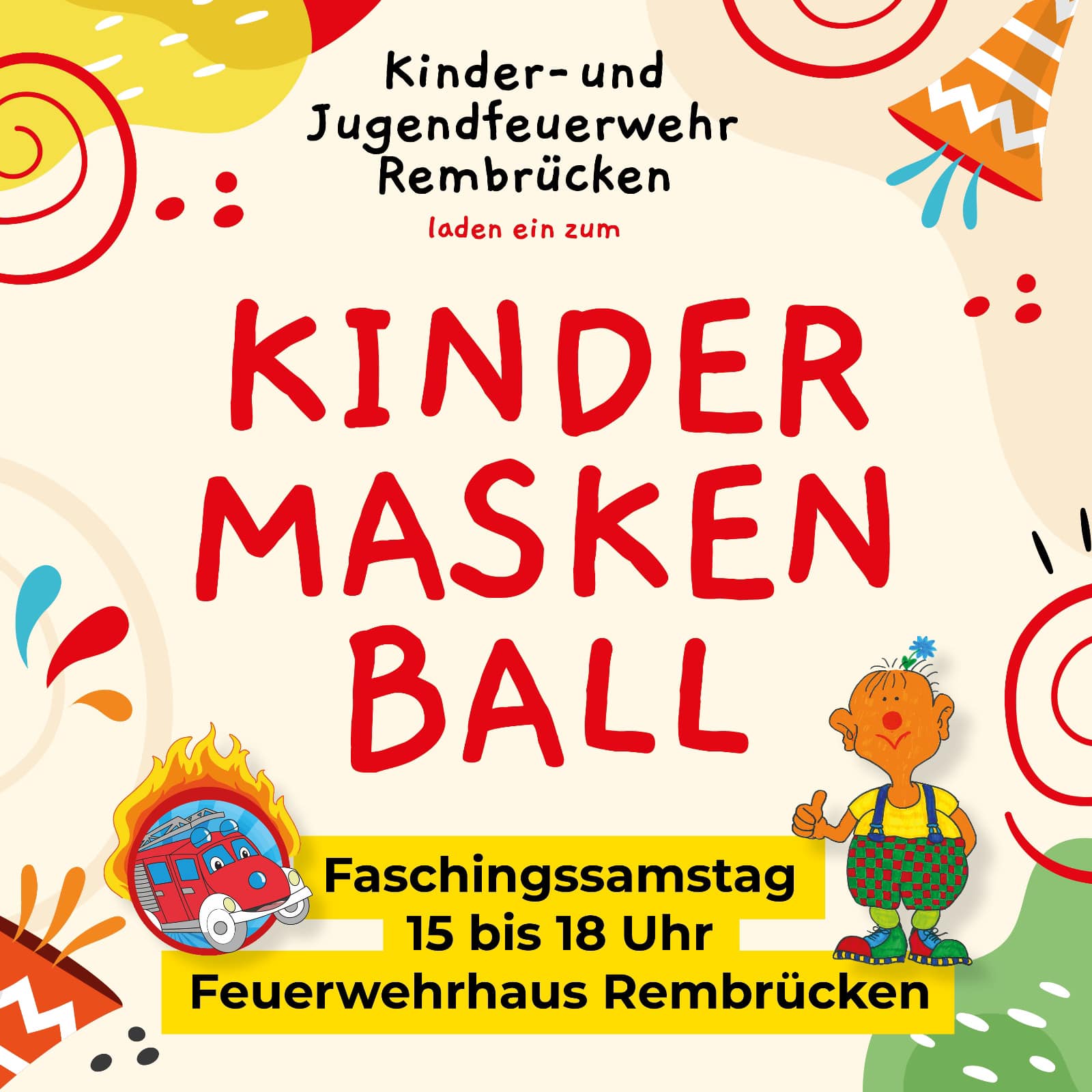Am 14. Februar 2026 lädt die Kinder- und Jugendfeuerwehr Rembrücken zum inzwischen 30. (!) Kindermaskenball in das Feuerwehrhaus in der Obertshäuser Straße 30 ein. Einlass ist um 15 Uhr. Auf die kleinen Gäste und ihre erwachsenen Begleiter warten wieder viele Spiele, Musik und Tanz. Natürlich ist auch für das leibliche Wohl gesorgt: Freut Euch auf süße und herzhafte Crêpes, Pommes und mehr.