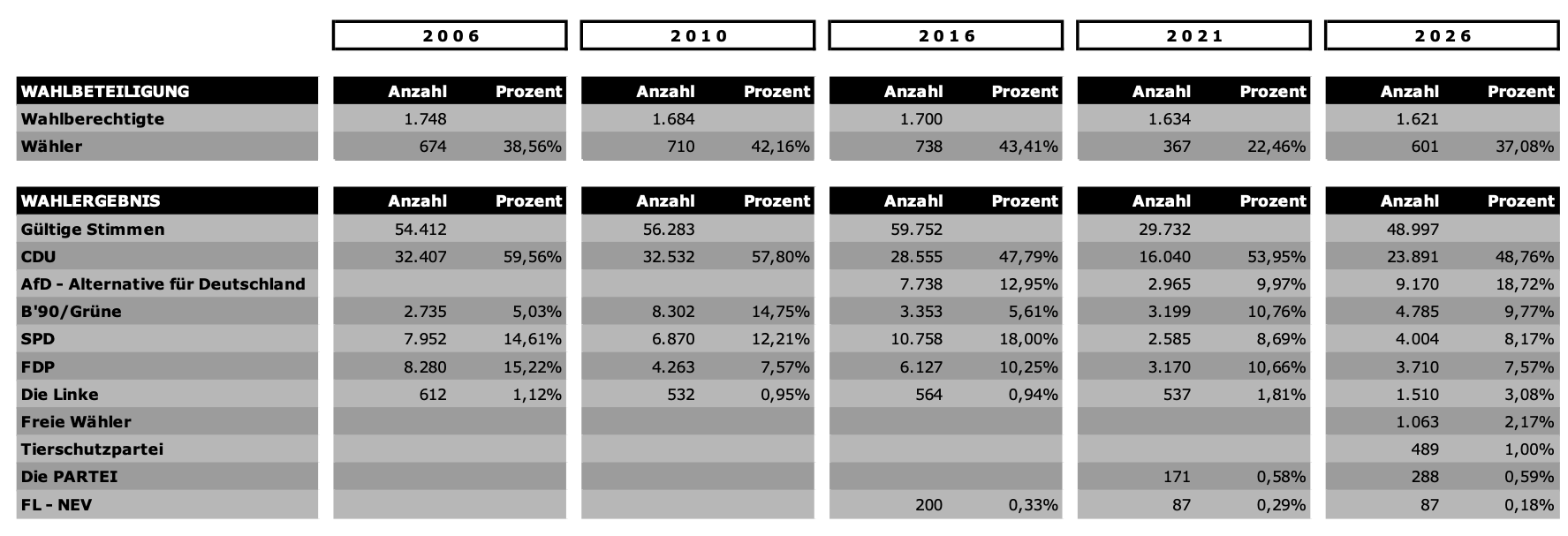 Die Zahlen wurden nach bestem Wissen und Gewissen auf Basis der offiziellen Auszählungen ermittelt; dennoch erfolgt die Darstellung hier natürlich ohne jegliche Gewähr.